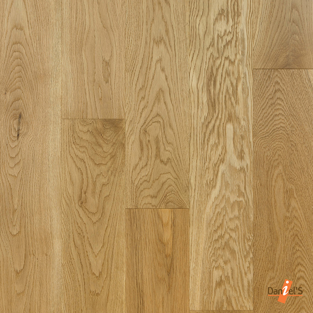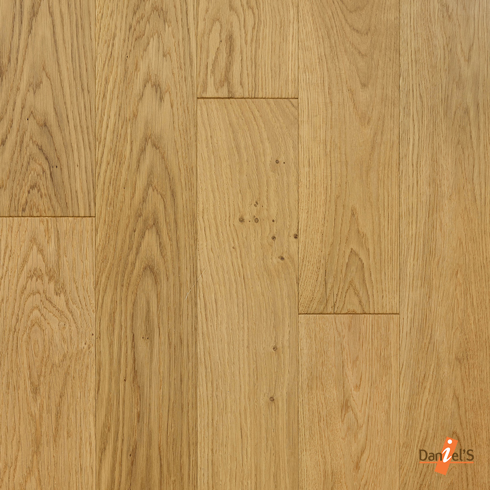 Parquet contrecollé d'epaisseur 15 mm avec 4 mm de parement en chêne choix Select ou Rustic, de largeur 125 mm et de longueur 400 mm à 1200 mm avec 4 micro-chanfreins.
